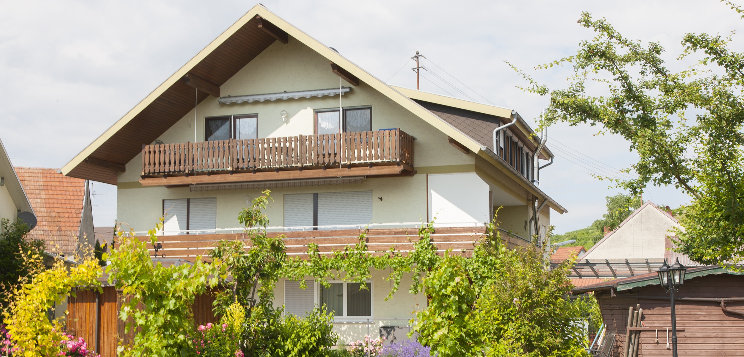 Unsere neu renovierten Wohnungen sind ruhig in unserem Wohnhaus gelegen mit Blick in Garten und auf die Weinberge.