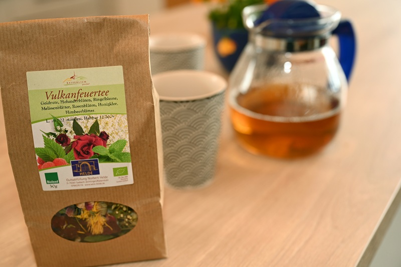 In jeder Tasse steckt die harmonische Mischung von Goldrute, Calendula, Himbeerblättern, Johanniskraut, Pfefferminze, Zitronenverbene, Schafgarbe, Dost und vielen weiteren Heilpflanzen – eine wohlschmeckende Hausteemischung, die Körper und Geist guttut.